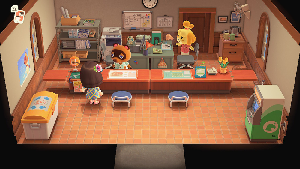 In the Resident Services building, sit at Tom Nook’s station (the one on the left).