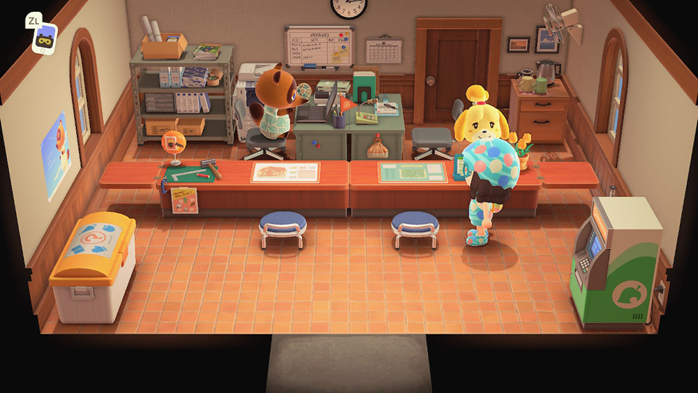 Head into the Resident Services building and sit at Isabelle’s station (the one on the right).