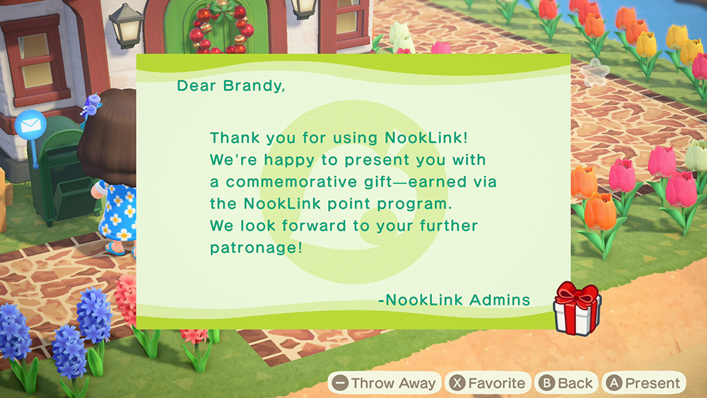 From there, your item will be delivered to your mailbox in New Horizons. Look for a letter from “NookLink Admins,” which has your item attached as a present!