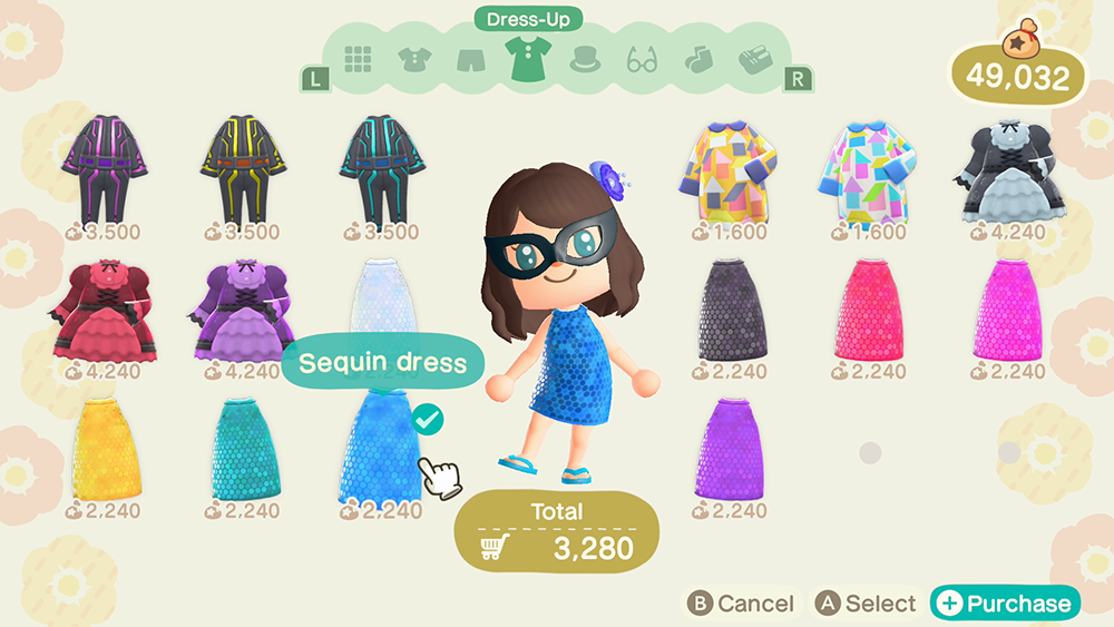 For instance, on April 1, we can buy the Sequin Dress and Ballroom Mask in our own Able Sisters shop. The Sequin Dress comes in eight different colors, with each one priced at 2,240 Bells. The Ballroom Mask, meanwhile, is available in black and white for 1,040 Bells each.