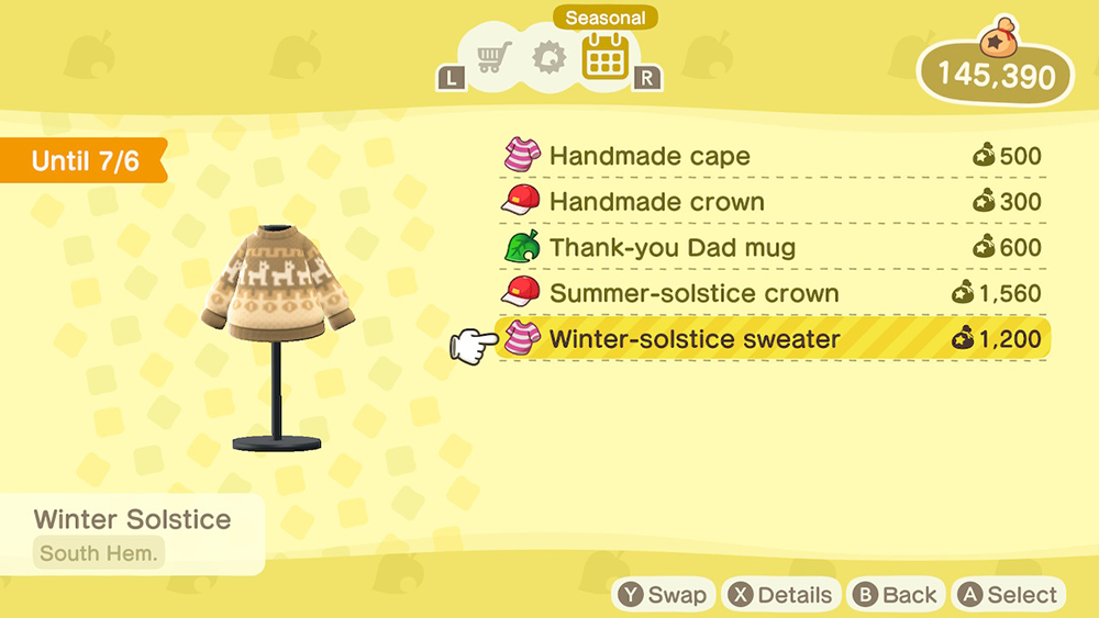 The seasons are changing in the real world and Animal Crossing: New Horizons is celebrating with the release of two limited-edition items: the Summer-Solstice Crown and the Winter-Solstice Sweater.