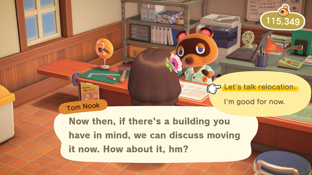 If this is the first time you’ve talked to Tom Nook about moving a structure, he’ll give you a bit more information about the process, and you’ll need to select “Let’s talk relocation” to continue.