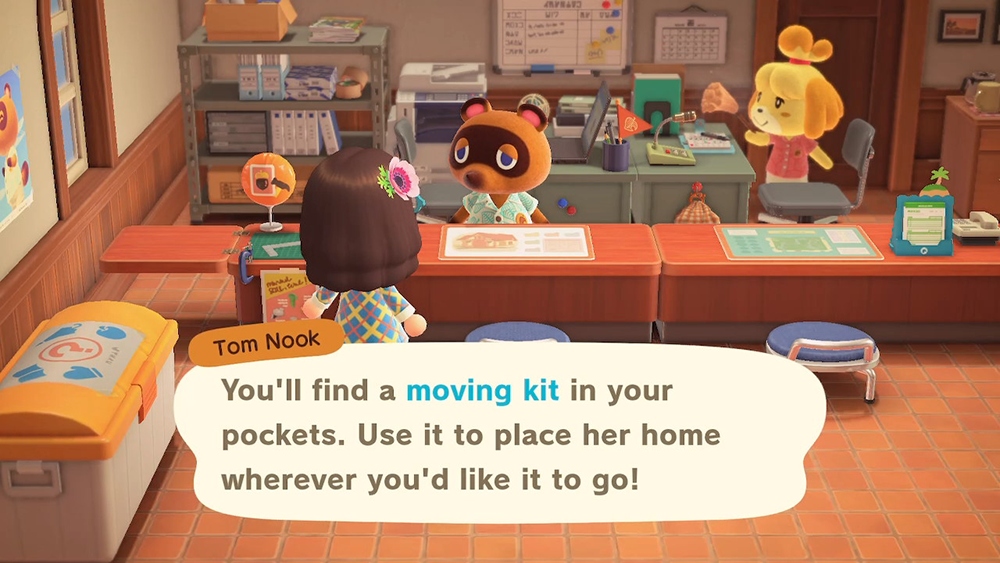 Once the villager accepts the plan to move their house, Tom Nook will give you a “Moving Kit” that you can use to mark where the villager’s house should go.