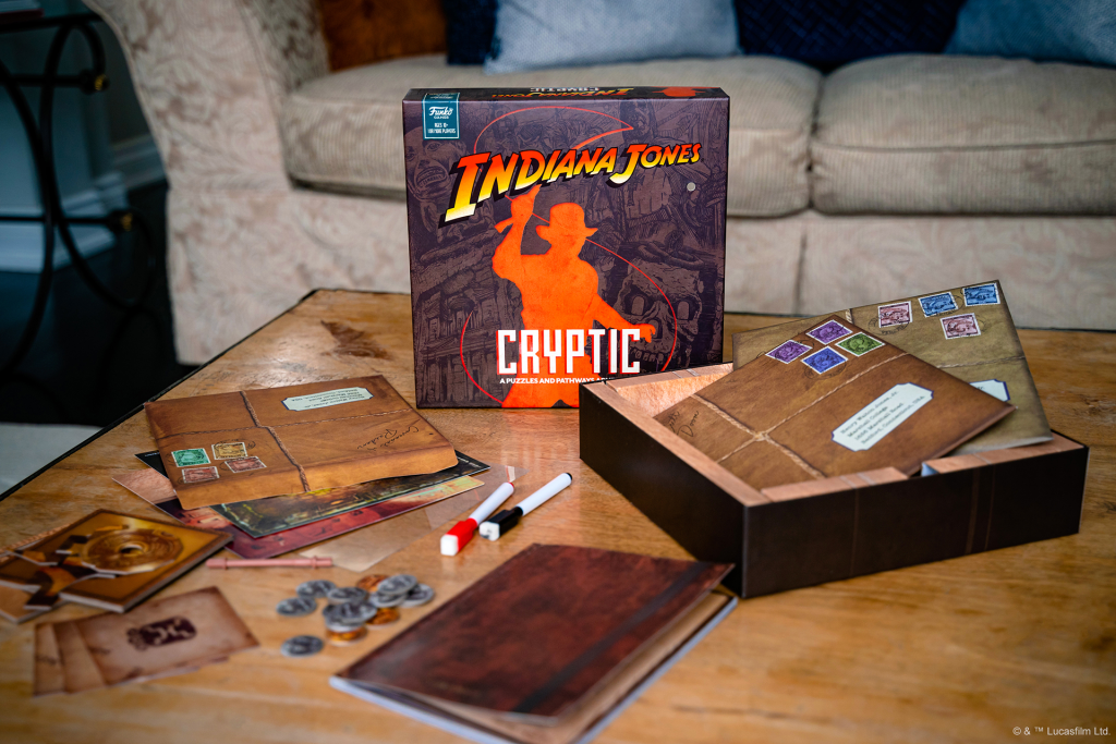 Indiana Jones Cryptic is the first game in Funko’s new line of “Puzzles and Pathways Adventures” games. The escape room game will allow players to complete three different adventures based on the first three films in the Indiana Jones franchise. Players will be guided through the game by Indiana Jones’ journal, and they’ll be challenged to “decipher ancient texts, uncover valuable clues, and defeat unknown evils with logic, deduction, and creative thinking.” Players will also be able to explore jungles and temples by drawing routes on the game’s maps.