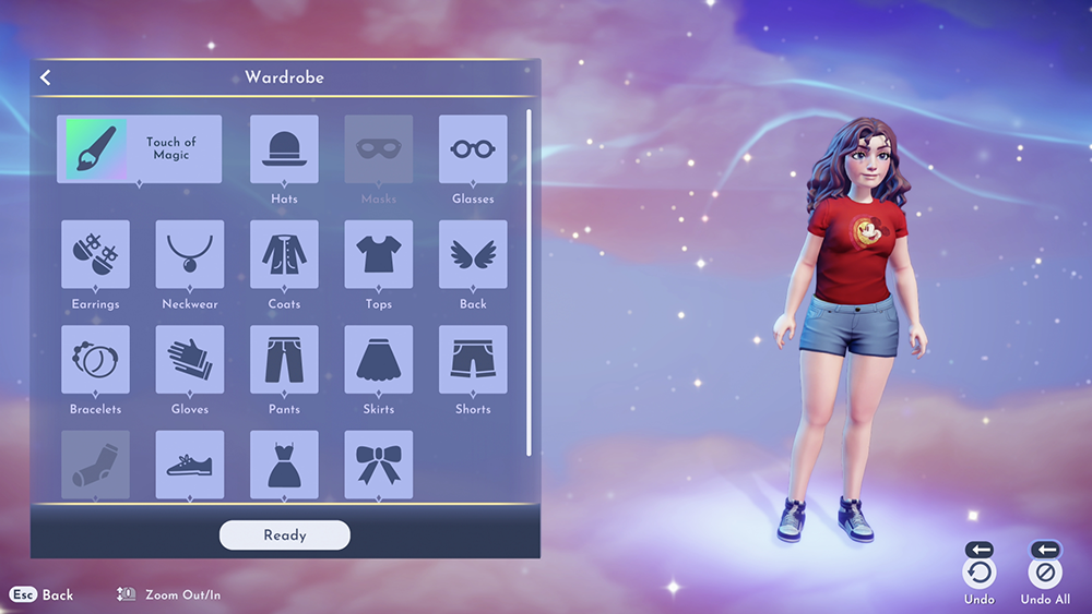 From there, they can customize their avatar’s outfit by choosing from a wide variety of clothing and accessory options. Players can dress their avatar in the designer’s stock clothing options, and they can also customize clothing using the game’s “Touch of Magic” tool. This tool allows players to customize a piece of clothing or an accessory from scratch by choosing the base item and then choosing from different colors and designs until they’re happy with their creation.