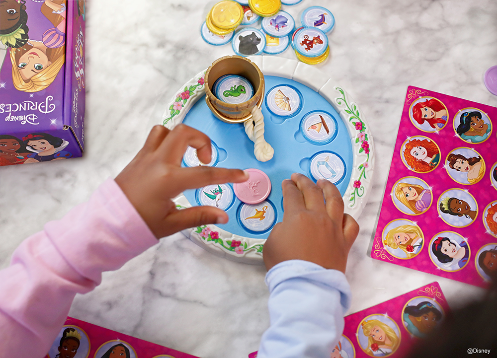 If players don’t have a spot on their board that matches the Disney Princess they need, they can cover any spot on their board. The goal is to be the first player to create a “Bingo” — a complete line of four coins in a row going vertically, horizontally, or diagonally.