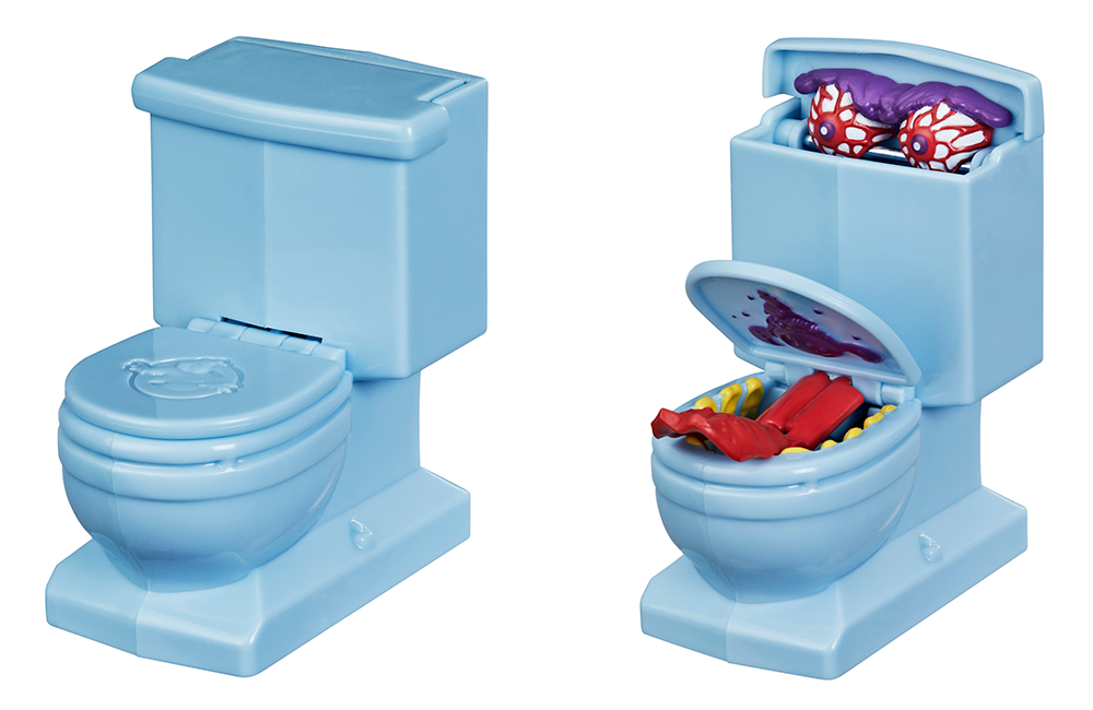 The Fearsome Flush figure, meanwhile, has moving lids for the toilet bowl and tank, which will automatically open and close as you roll the figure across a flat surface (it has wheels on the bottom). Each time the lids open, the ghost inside the toilet is revealed.