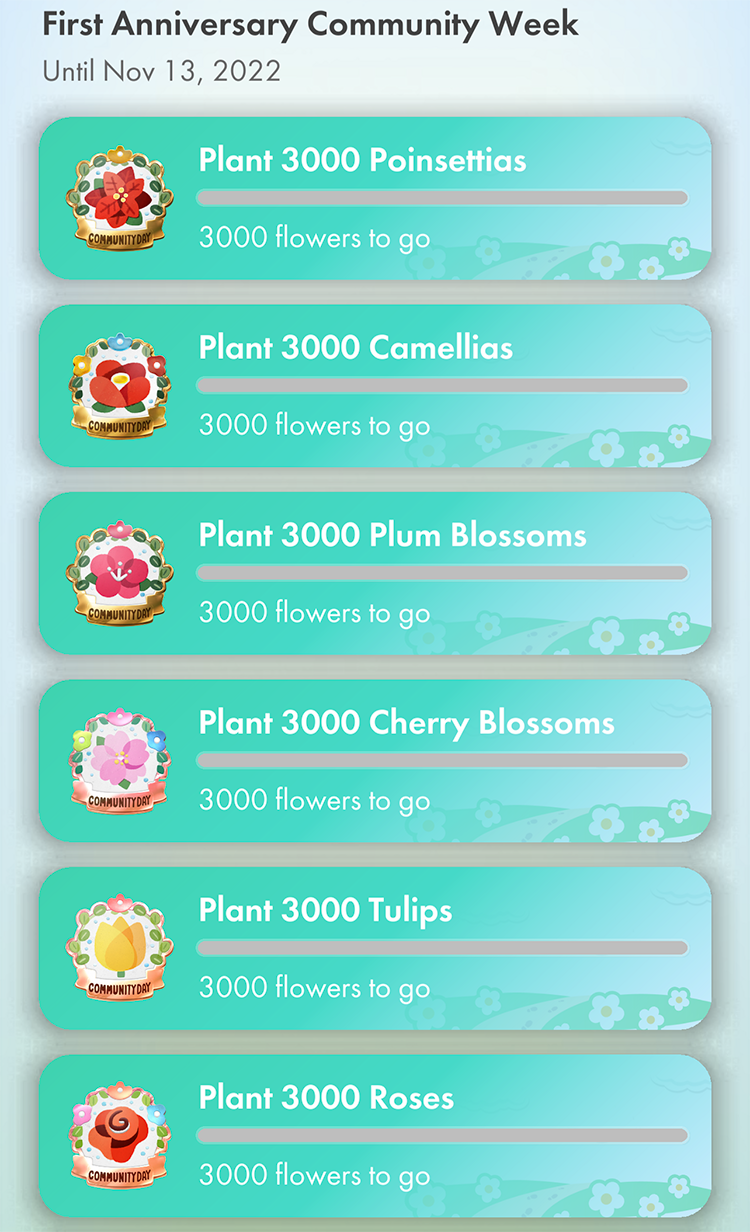Each of these Flower Planting tasks asks players to plant 3,000 flowers of a specific type. For instance, the December 2021 Community Day event focused on Poinsettias. If players didn’t earn the Poinsettia Flower Badge during this event, they’ll have a Flower Planting task that asks them to plant 3,000 Poinsettias.