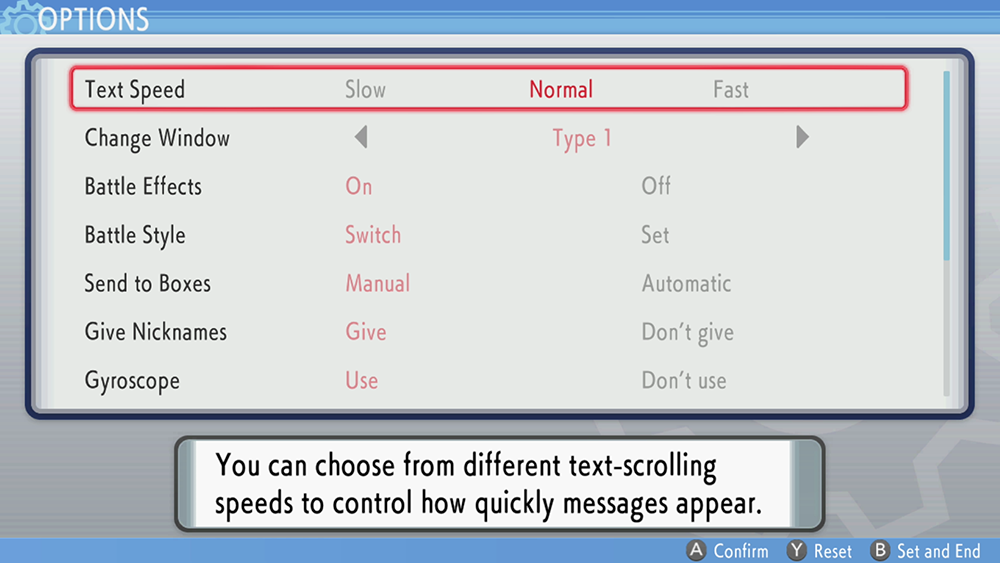 When you’re done making changes, press “A” or “B” and the game will ask you if you want to save your changes. Select “Yes” and your new text speed will be set!
