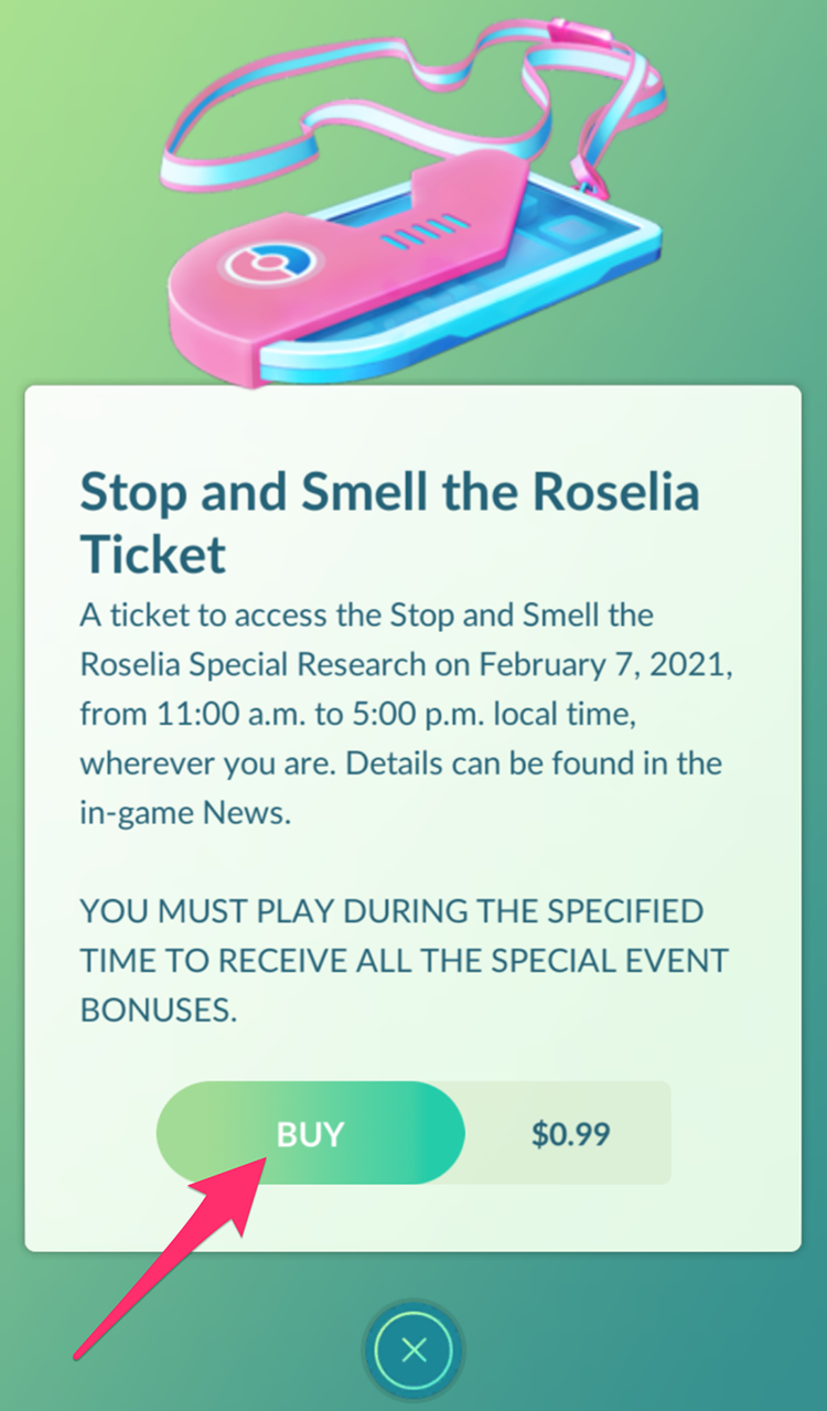 Before we begin, keep in mind that if you purchased the ticket for the upcoming Pokemon Go Tour: Kanto event before February 3 at 11:59 p.m. PT, you’ll receive the Stop and Smell the Roselia ticket at no additional cost. This Roselia ticket won’t appear in your inventory (you also won’t see the option to purchase it in the in-game store), but you will receive access to the Special Research once the Community Day event begins.
