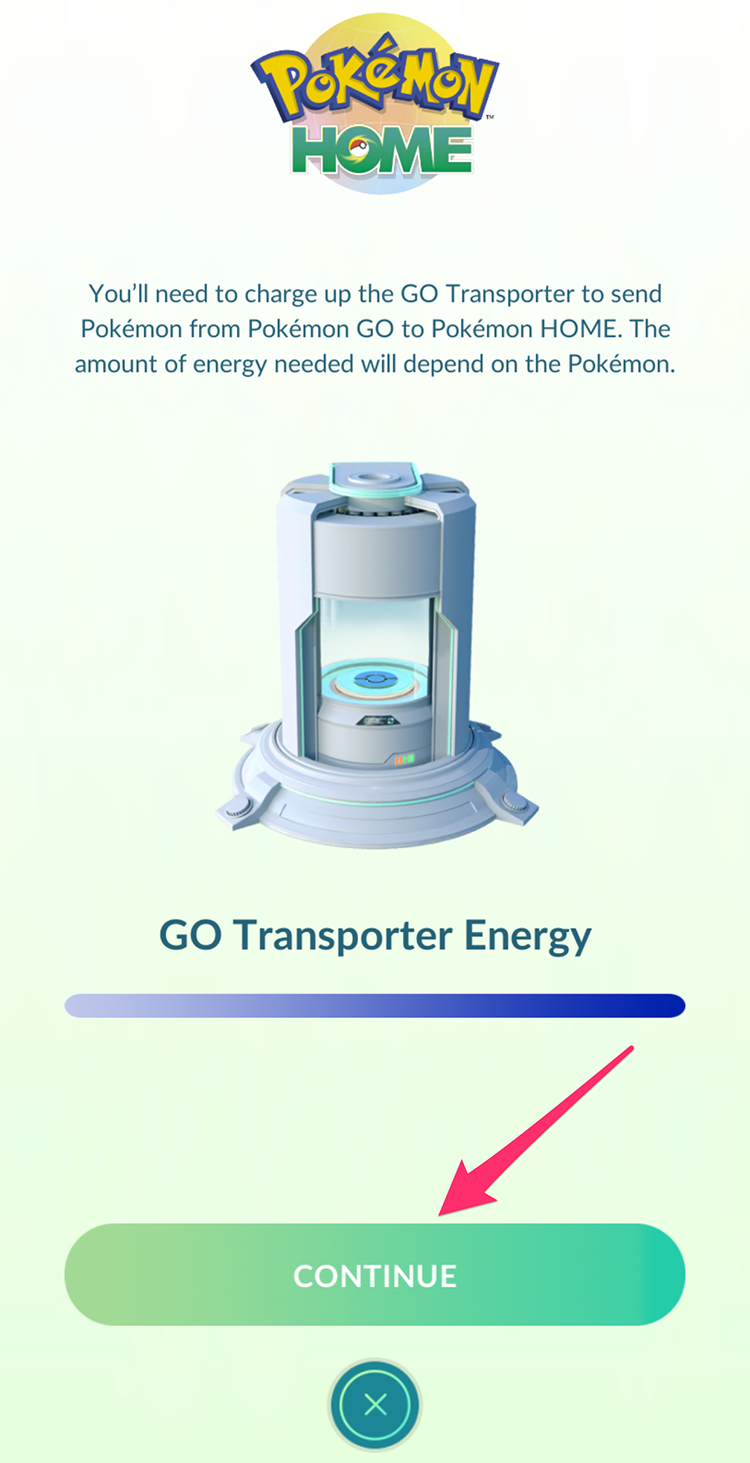Transferring Pokemon from Go to Home requires the use of Transporter Energy. The amount of Energy required to send a Pokemon varies, depending on the pocket monster you’re trying to send. You’ll start with a full meter of Transporter Energy. As you use Energy, it will automatically recharge over time, or you can spend PokeCoins to instantly refill your Energy meter. To continue, tap the “Continue” button.