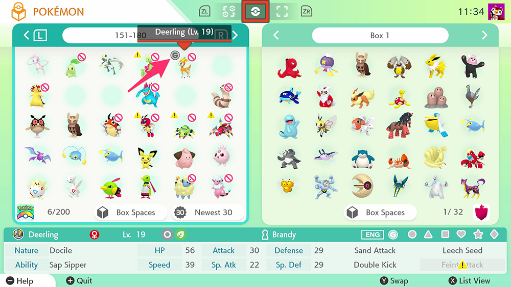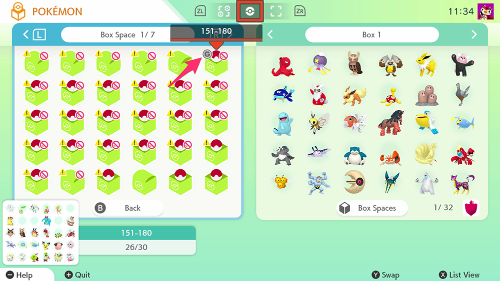 The Pokemon you receive will be placed in the first box(es) with empty spaces, and you can quickly find them by looking for the “G” symbol on a box when viewing all of your boxes.
