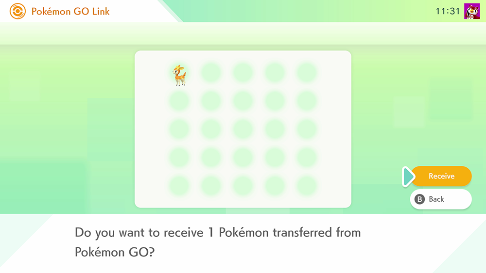 Now select “Receive” to confirm that you want to receive the Pokemon you’ve transferred.