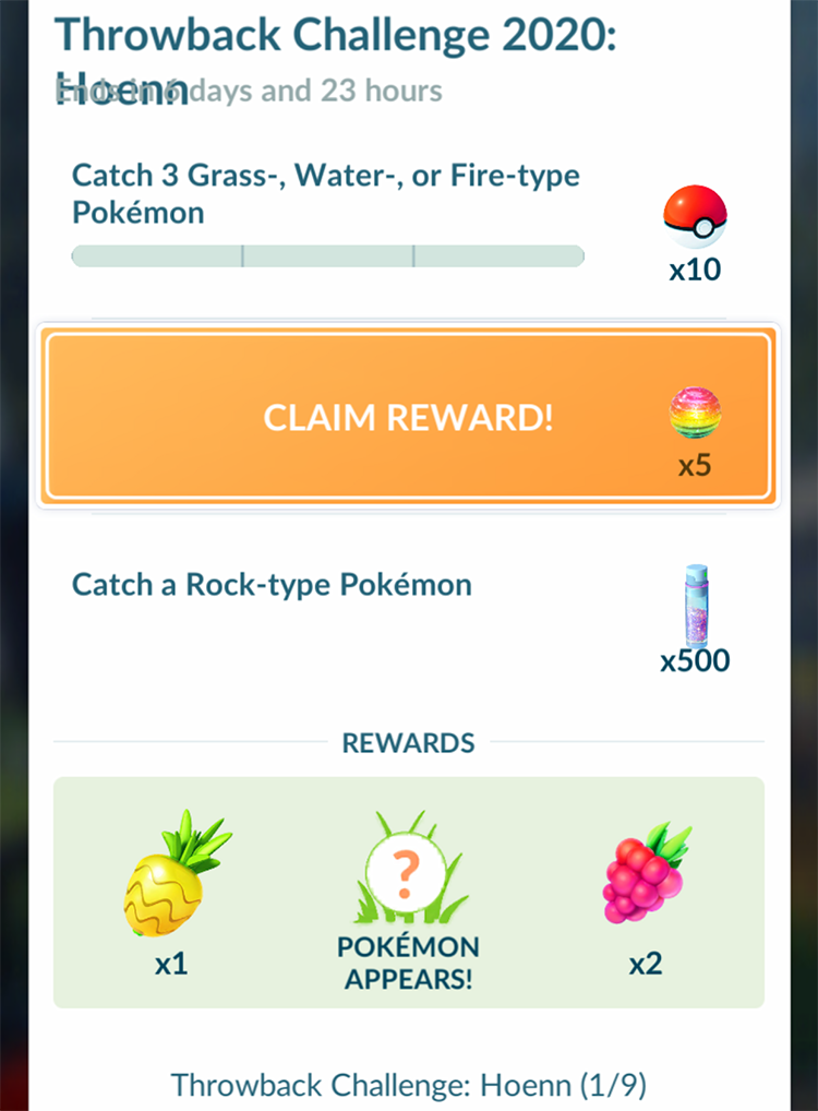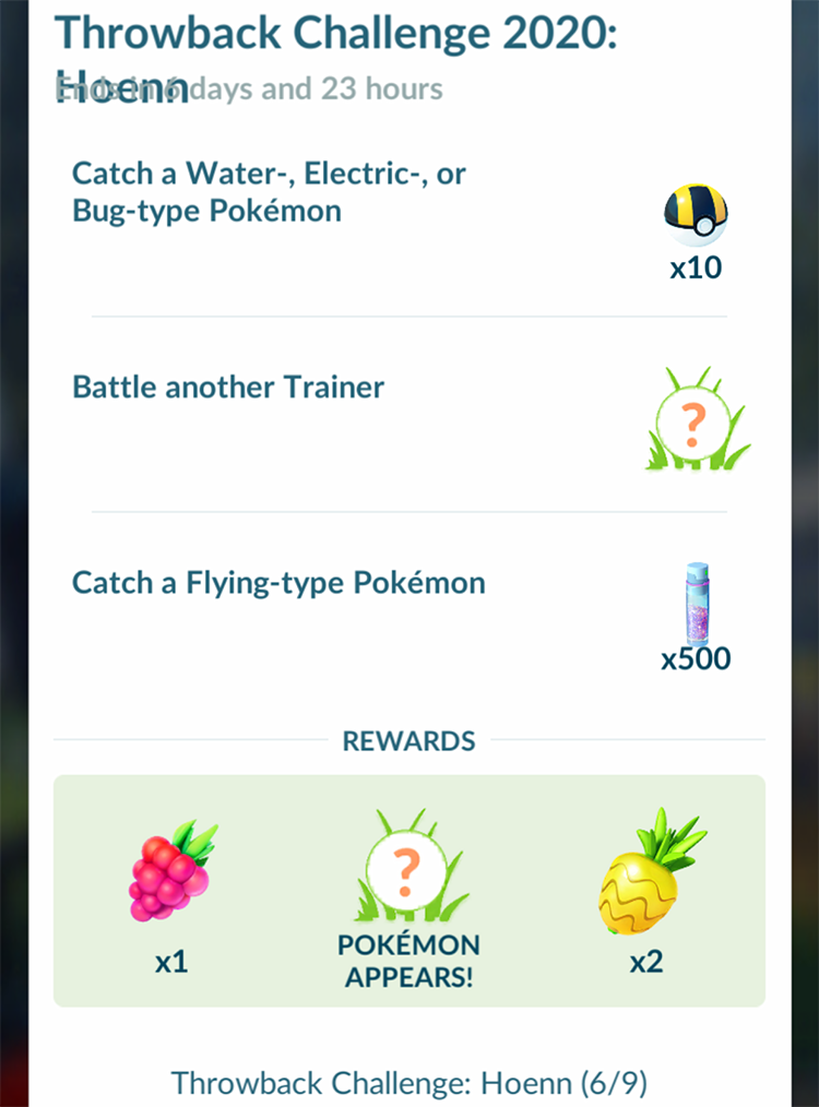 Pokemon Go Throwback Challenge 2020 Hoenn Research Tasks Guide