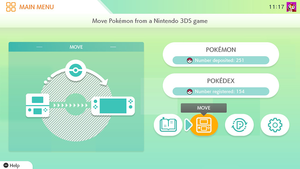 On the Pokemon Home main menu screen, select the 3DS symbol that says “Move.”