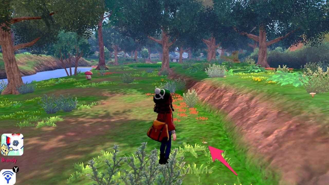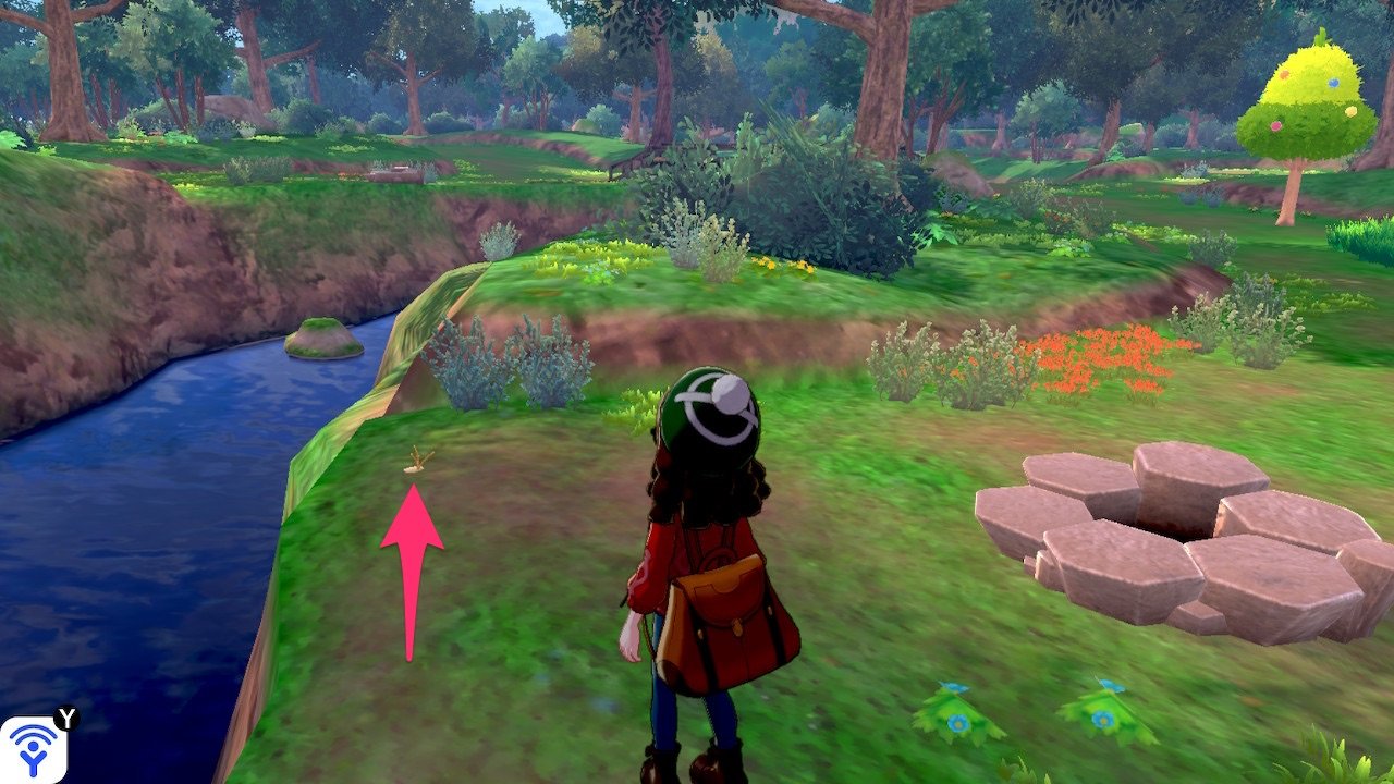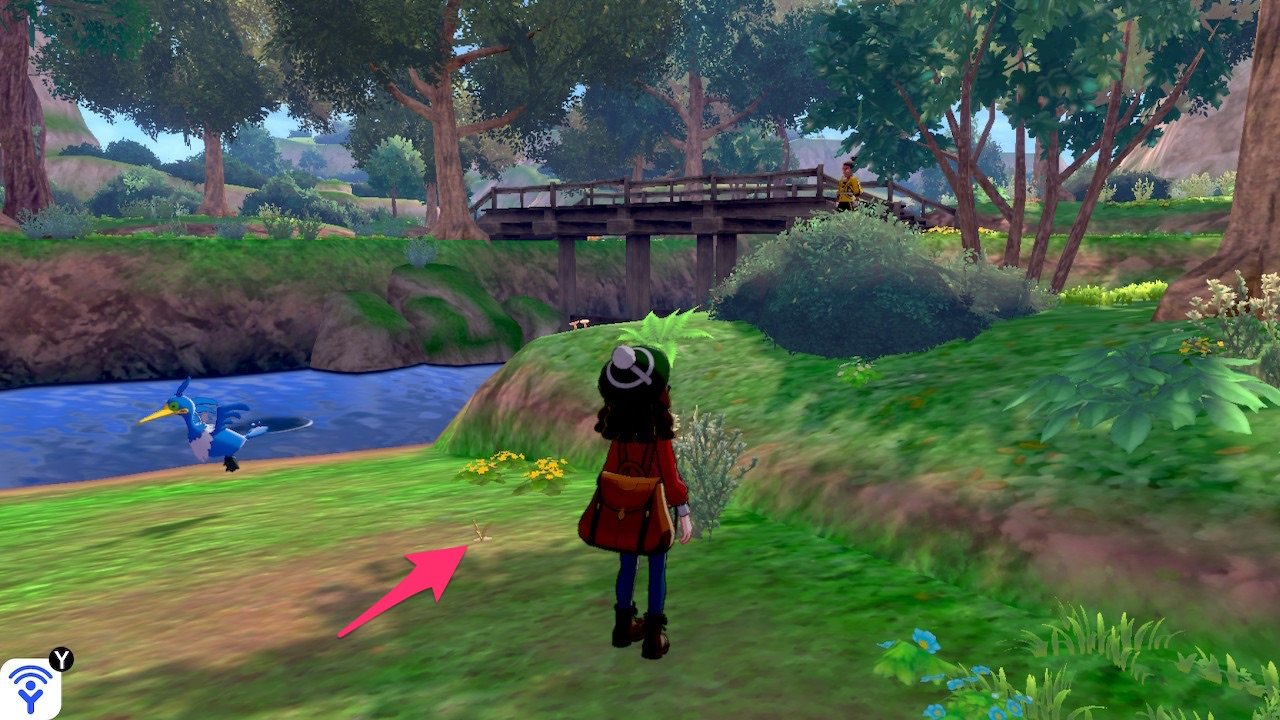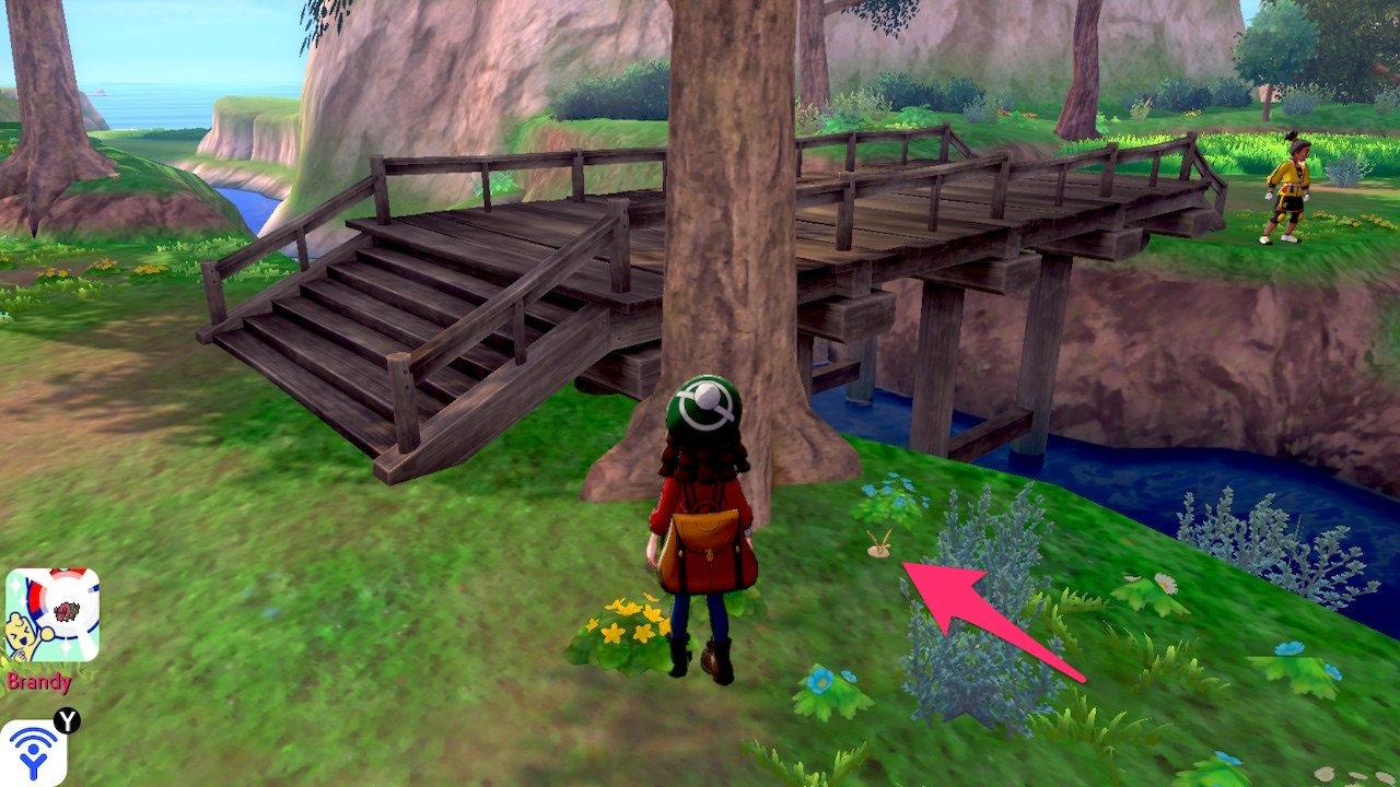 Finally, from this Diglett, keep heading back toward the first bridge in the area (again, if you entered the area from the Soothing Wetlands). As you continue down the path toward the bridge, you’ll see a bank on your left where you can enter the river (it’s near a Pokemon Den). The final Diglett in the Forest of Focus is hiding in the dirt on this bank.