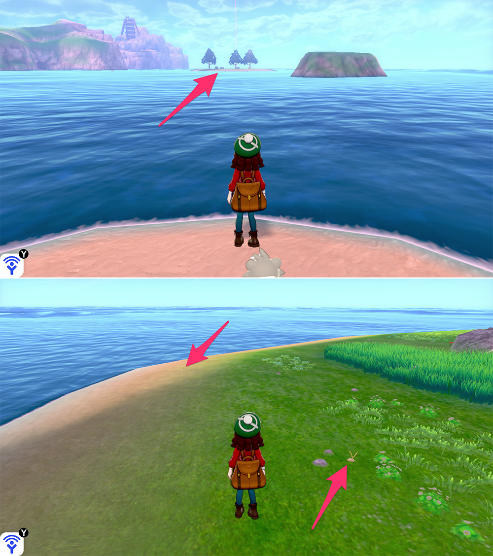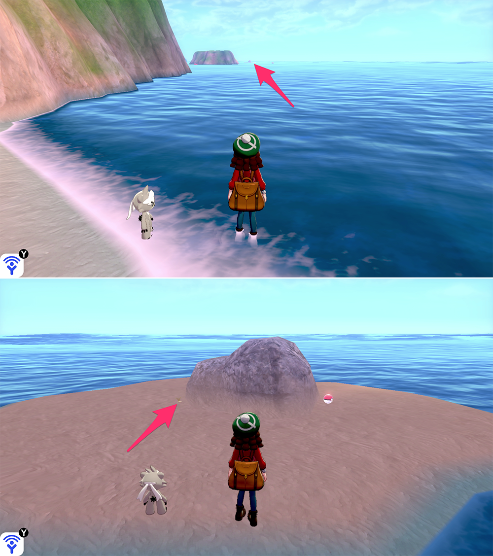 If you enter the Workout Sea from the far end of the Fields of Honor, head to the large island you can see in the distance (we’ve pointed it out in our first screenshot below). When you arrive, there’s an elevated piece of land to your left that has a Diglett on it.