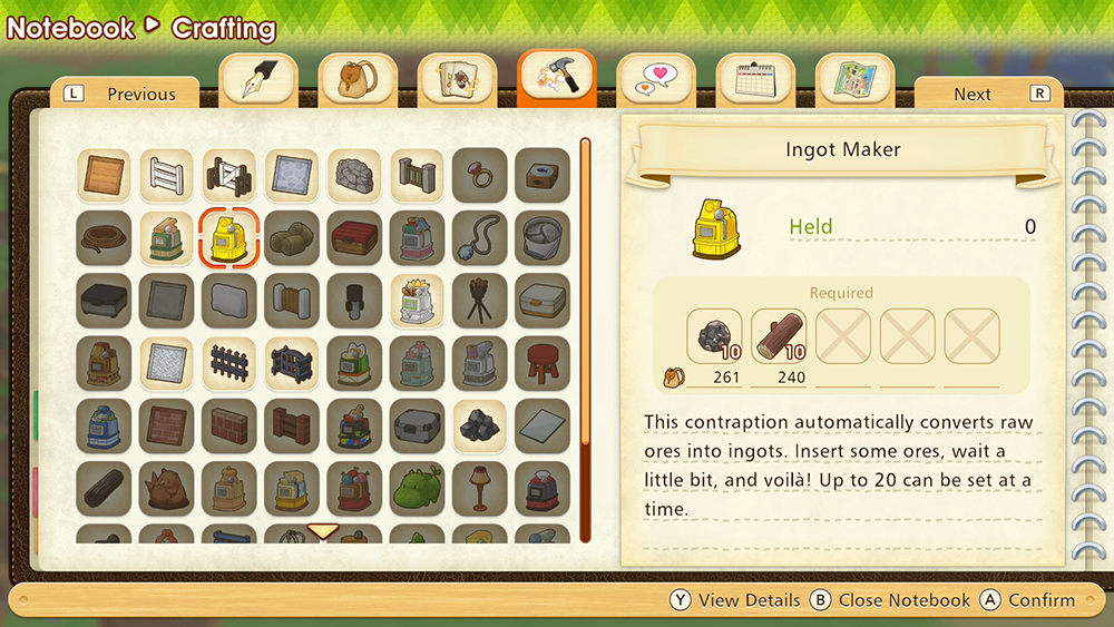 Before you can create ingots, you’ll need to build an Ingot Maker for your farm. You can create an Ingot Maker using 10 Iron ore and 10 Logs.