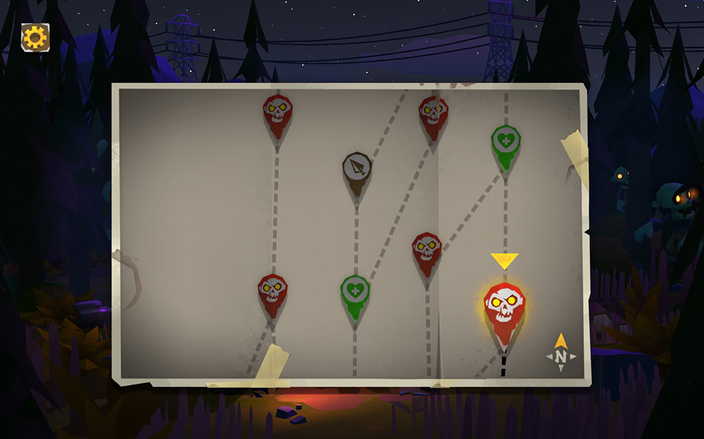 While there is a simple storyline in Survival Z, the game’s story missions are composed of randomly generated routes. For instance, the first story mission asks players to reach a diner. To actually get there, they’ll need to choose one of the randomly generated routes on the game’s map. Each route will have a different assortment of battle stages, medical tents, salvage spots, and so on. Players can choose the route they want to take based on the items they want to collect (including new playable characters) or how difficult they think the path will be.